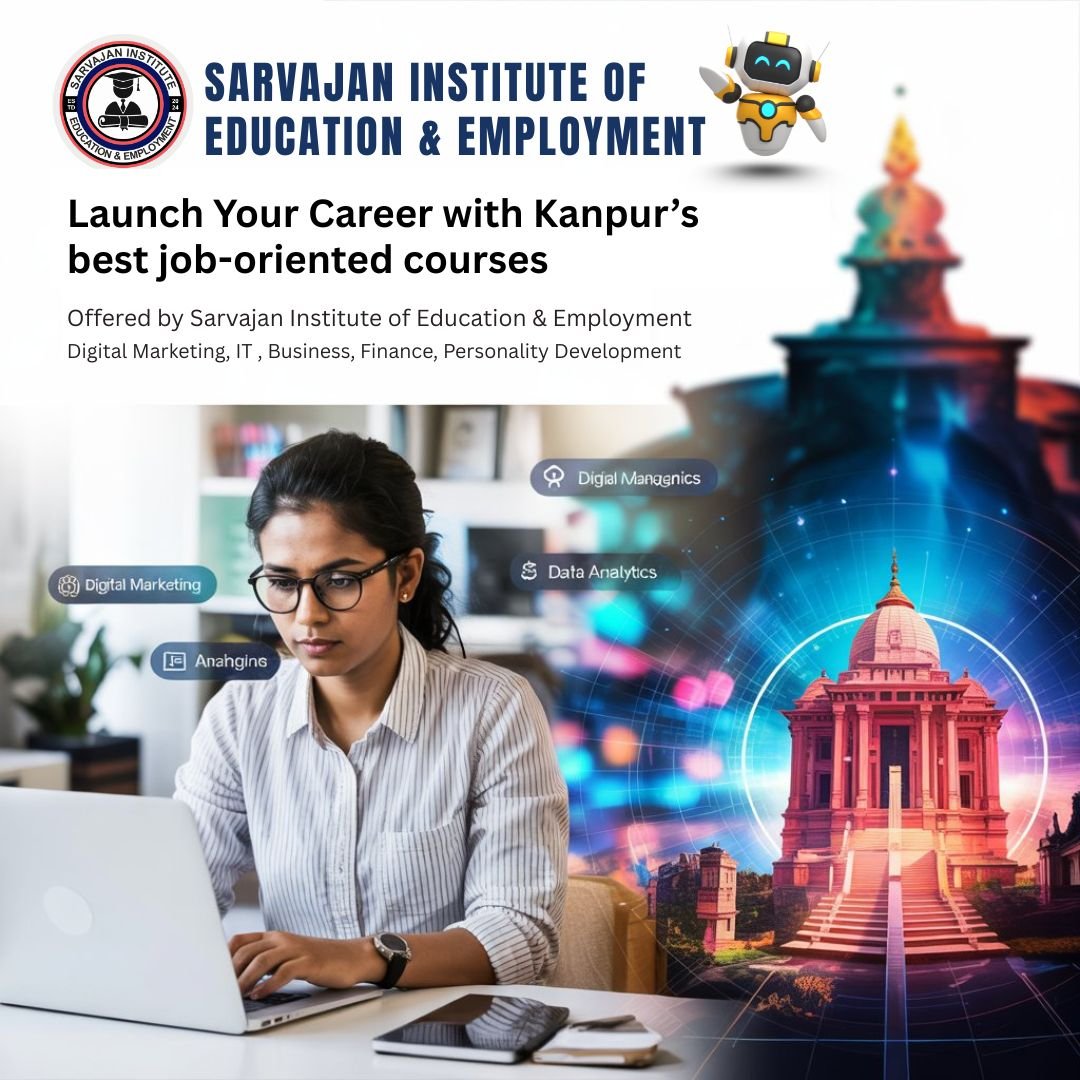 Sarvajan Institute of Education and Employment is Kanpur's leading training institute, specializing in computer literacy, digital literacy, digital marketing, web development, web design, app development, and mobile application development. We are recognized as a top choice for students seeking job-oriented courses in Kanpur that lead to real employment opportunities. With 10+ years of experience and over 10,000 students trained, Sarvajan has built a reputation for delivering 100% placement-focused training programs tailored to meet the skill demands of both government jobs and private sector careers. Our comprehensive curriculum includes 13+ certified professional courses and emphasizes hands-on learning, industry-relevant skills, and practical projects to ensure every student is job-ready upon graduation. Whether you’re a beginner or a professional seeking upskilling, we provide expert-led training to help you build a successful digital career. As the best digital marketing institute in Kanpur and a leader in web development training, Sarvajan Institute is committed to empowering students with cutting-edge digital skills, helping them achieve their career goals in today's fast-paced digital world.